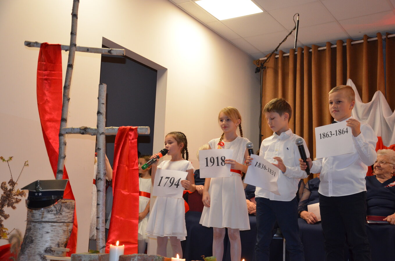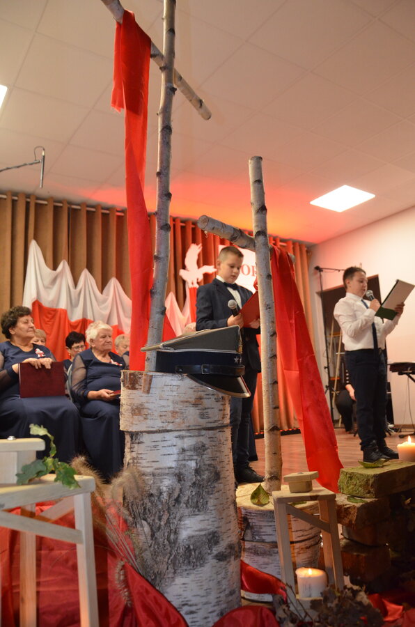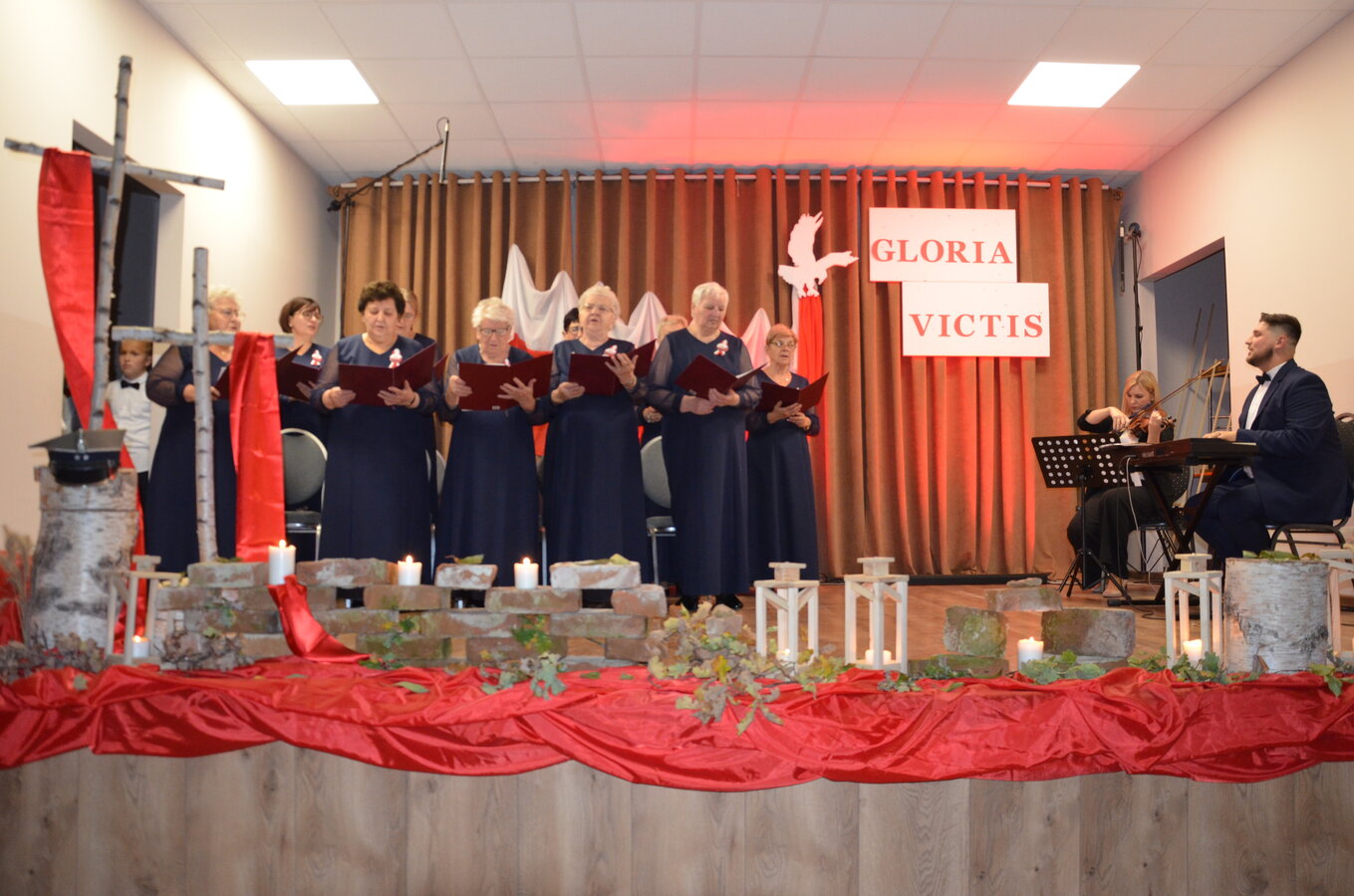 W ramach obchodów Narodowego Święta Niepodległości 11 listopada 2023 r. o godzinie 17:00 na sali wiejskiej w Jezierzycach Kościelnych oraz 12 listopada 2023 r. na sali wiejskiej w Zbarzewie odbyła się wieczornica Gloria Victis. Uczniowie naszej szkoły wraz z zespołami śpiewaczymi "Jezioranki" i "Zbarzewianki" przygotowali inscenizację słowno - muzyczną w hołdzie wszystkim tym, którzy polegli w czasie długiej i krwawej drogi do odzyskania niepodległości.