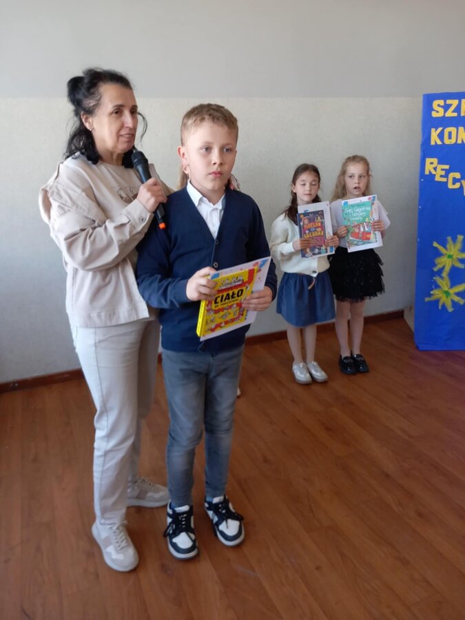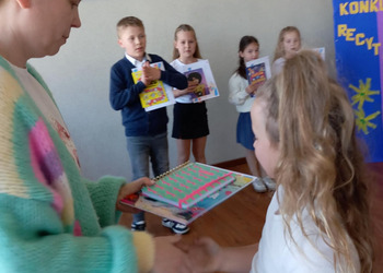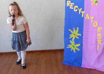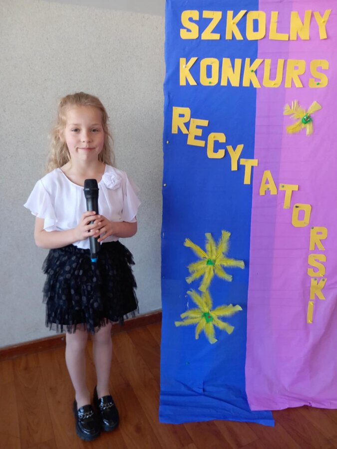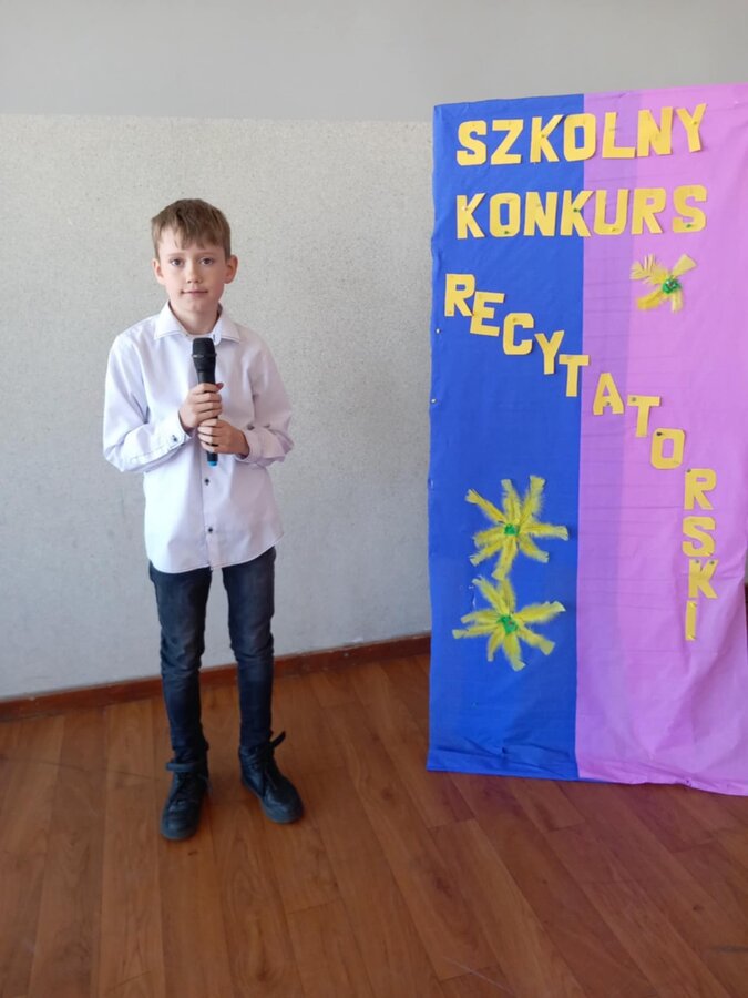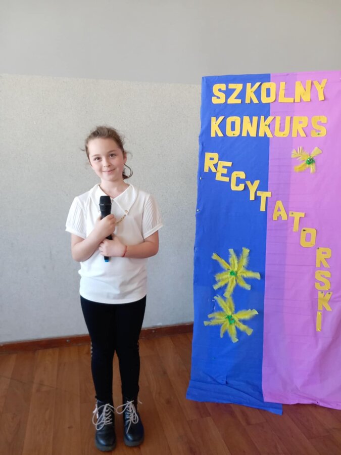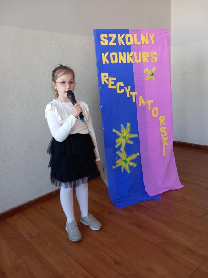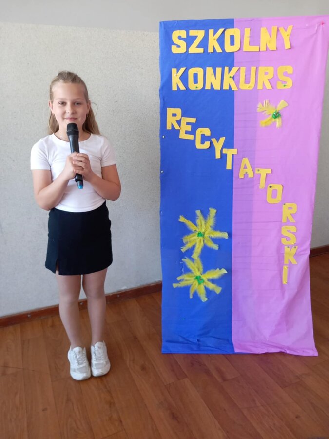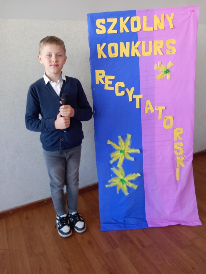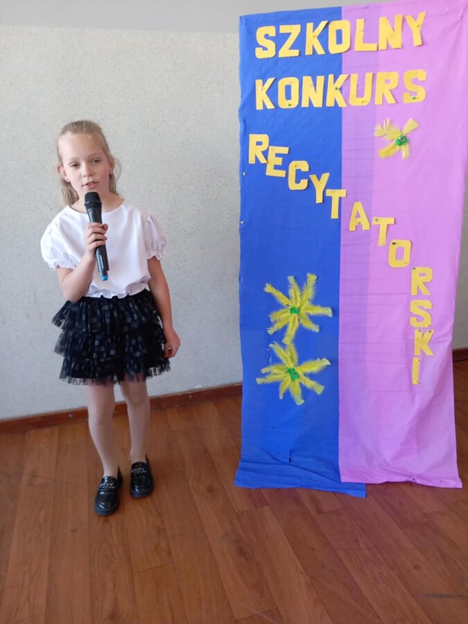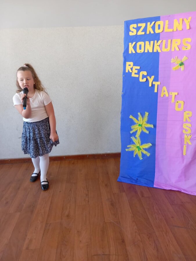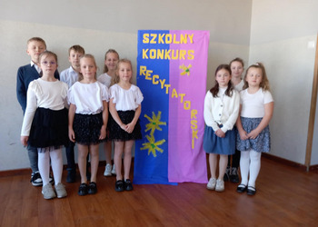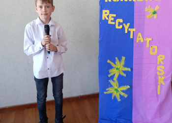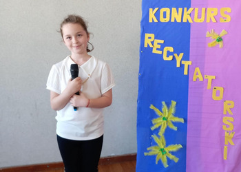 28 kwietnia uczniowie klas młodszych brali udział w kolejnym konkursie. Piękną recytacją popisali się najlepsi recytatorzy z każdej klasy. Byli to: Emilia Małecka, Nikola Gąd, Wiktoria Gąd z klasy pierwszej ; Amelia Leśniarek, Laura Szenk, Natalia Kopeć z klasy drugiej i Zuzanna Gąd, Antoni Kruk, Mateusz Nowaczyk z klasy trzeciej. Pierwsze miejsce w konkursie zajęła Natalia Kopeć z klasy drugiej, drugie miejsce Antoni Kruk i trzecie miejsce Zuzia Gąd z klasy trzeciej. Przyznano też dwa wyróżnienia, które otrzymały Nikola Gąd i Laura Szenk. Zwycięzcy otrzymali dyplomy i nagrody książkowe.