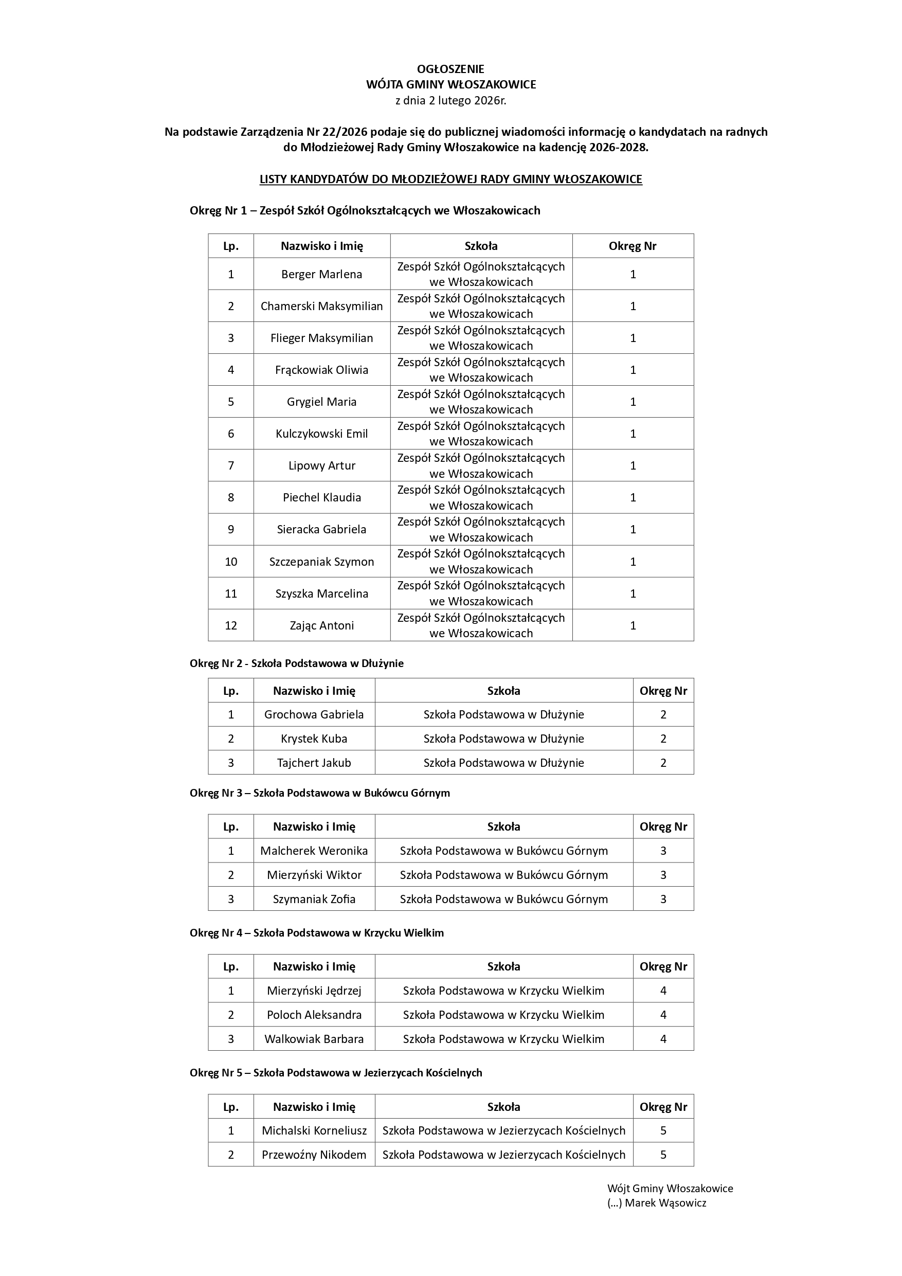 Wybory do Młodzieżowej Rady Gminy - informacja o kandydatach