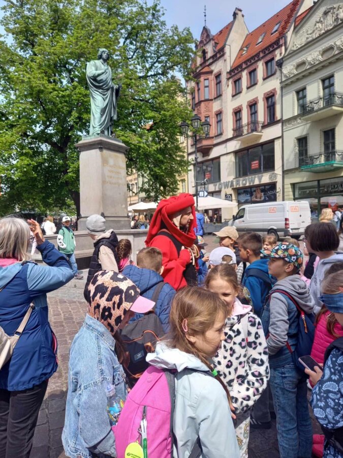 24.04. dzieci z klasy trzeciej były na wycieczce w Toruniu. W towarzystwie przewodnika ubranego w strój kupca zwiedzały miasto, poznały pamiątki i ciekawostki dotyczące Mikołaja Kopernika. W Muzeum Partaczy uczestniczyły w warsztatach pieczenia pierników. Były również w Planetarium na seansie pt." Zostać astronomem". Każdy wracał do domu w wyśmienitym nastroju dzieląc się swoimi wrażeniami.