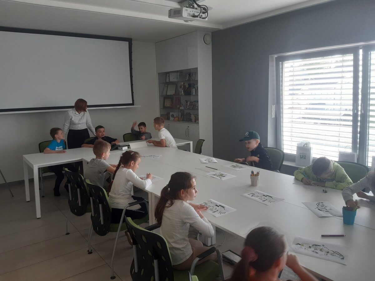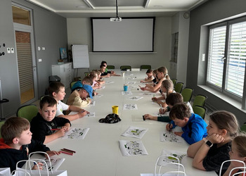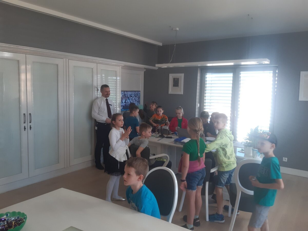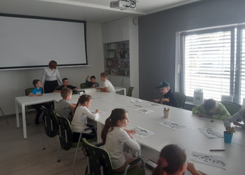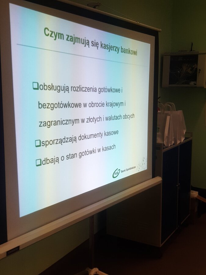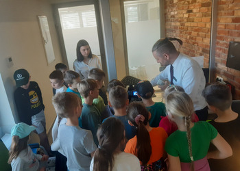 Tego samego dnia również klasa 7 miała okazję spotkać się z Panią Dorotą Grygiel. Pani Prezes przedstawiła jak wygląda struktura banku oraz na jakie komórki podzieleni są pracownicy. Uczniowie dowiedzieli się na czym polega praca m.in. pracownika obsługi klienta, ryzyka bankowego, księgowych, kasjerów i informatyków.