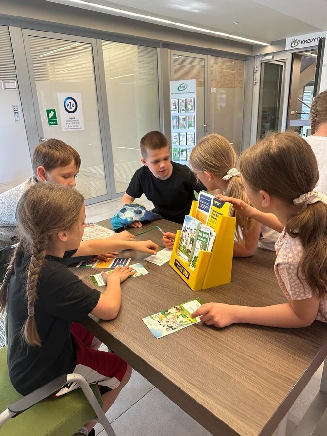 Dnia 30 kwietnia uczniowie klasy II oraz III udali się do Banku Spółdzielczego we Włoszakowicach. Spotkali się tam z Panią Prezes Dorotą Grygiel, która opowiedziała o pochodzeniu i historii pieniądza. Następnie dzieci mogły zobaczyć działanie liczarek do pieniędzy oraz to, w jaki sposób pracownicy banku doładowują bankomat. Na koniec każdy otrzymał piękne podarunki.