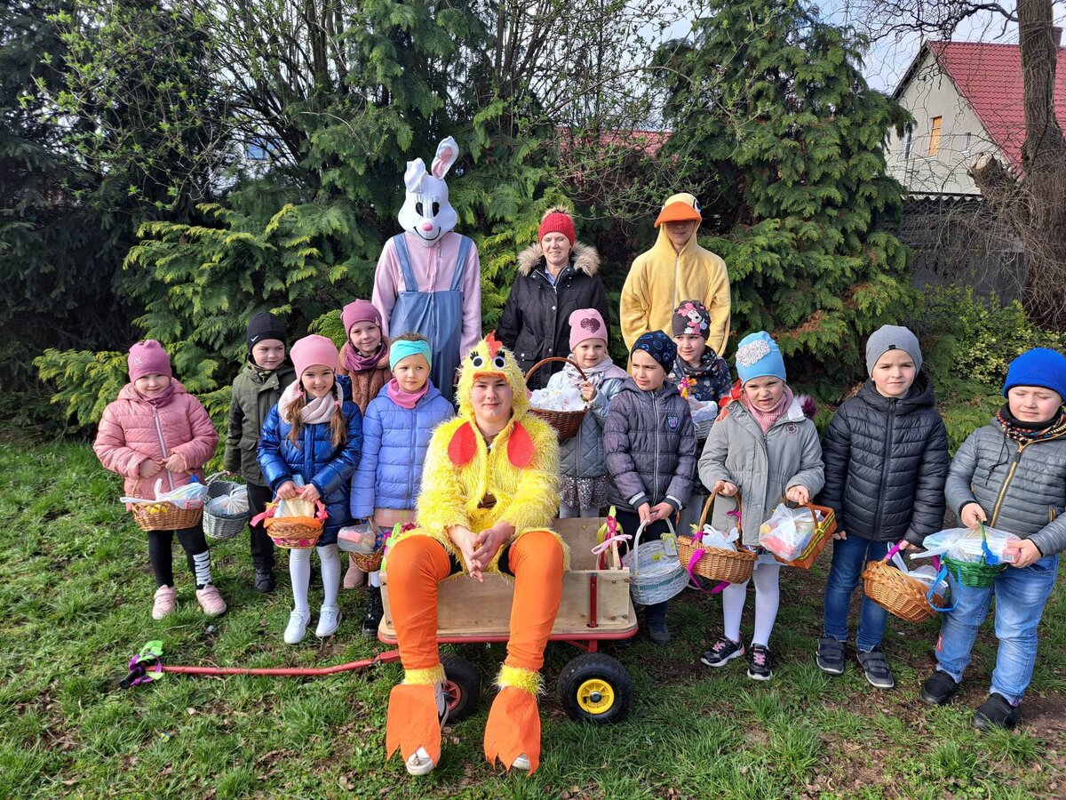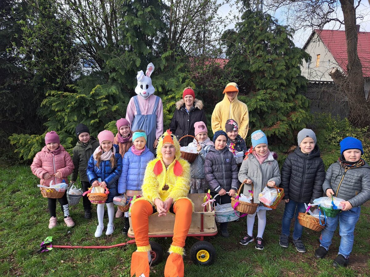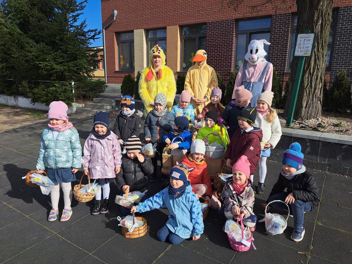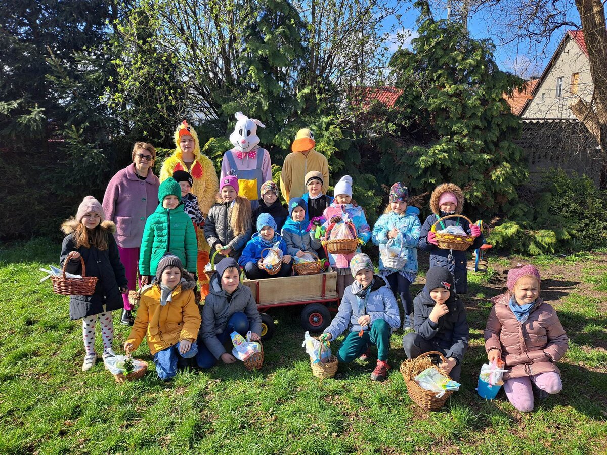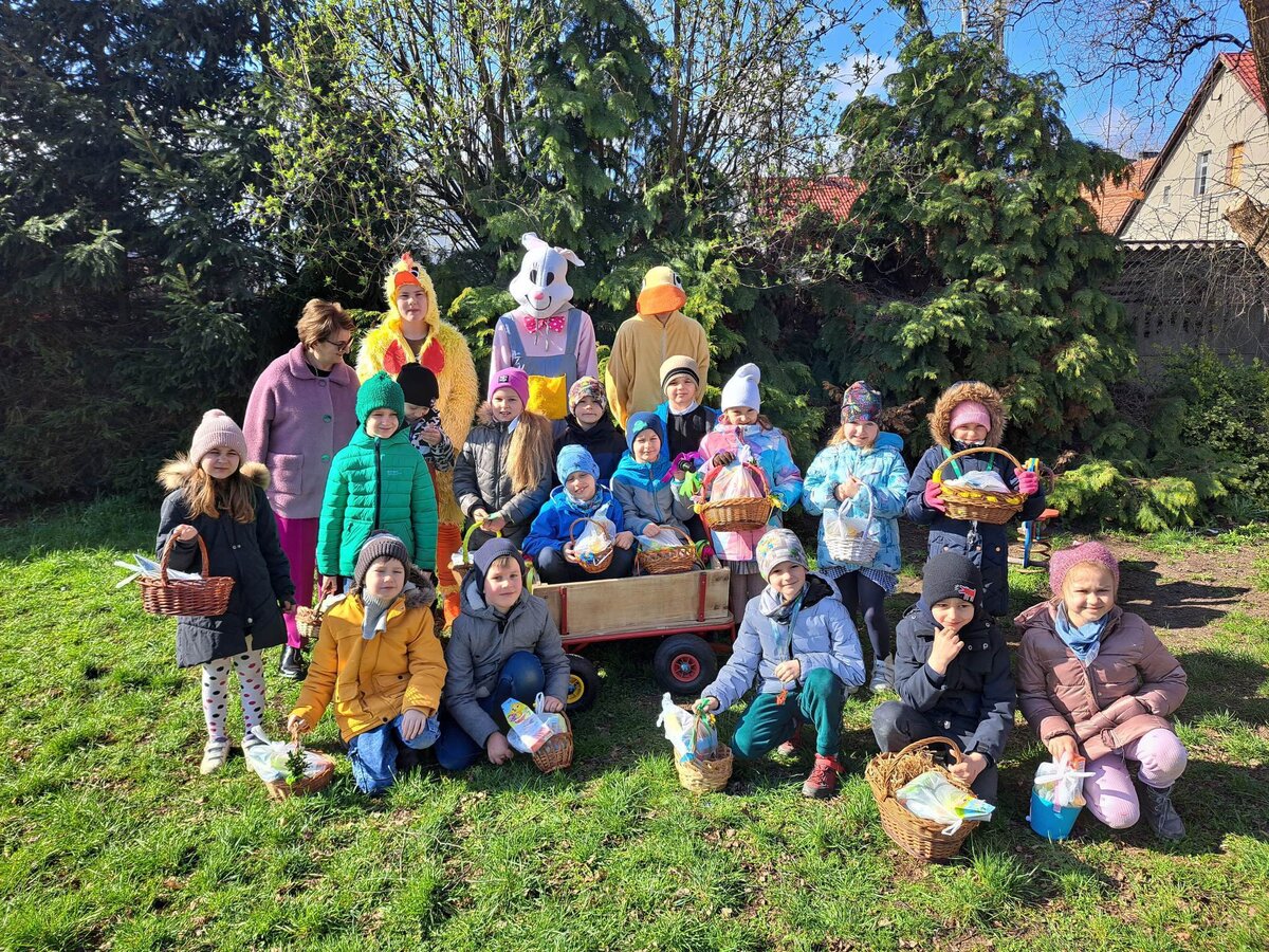 Radości było co niemiara, gdy wszystkie dzieci zobaczyły w drzwiach swoich sal tak nieoczekiwanego gościa. Zajączek w towarzystwie pomocników odwiedzał wszystkie klasy i częstował uczniów słodkościami, a nauczycielom życzył Wesołych Świąt. W szkole zapanowała świąteczna atmosfera, a to dzięki Radzie Rodziców. Był to wspaniały, pełen wrażeń dzień.