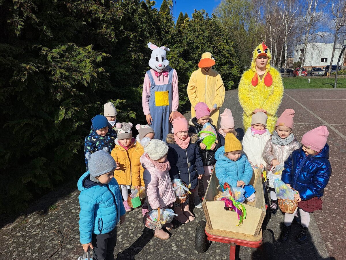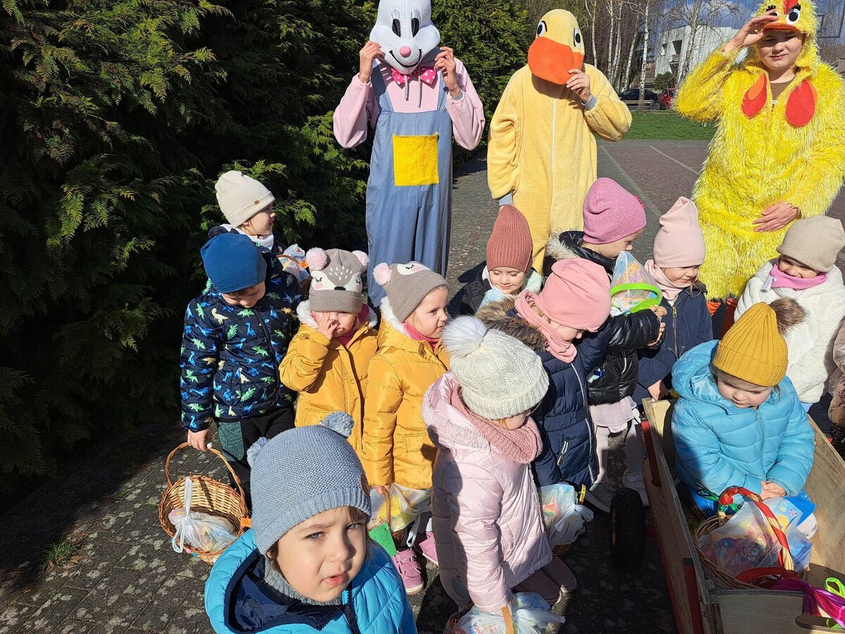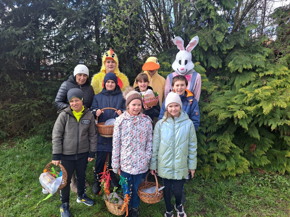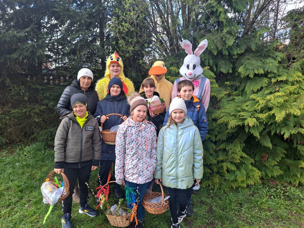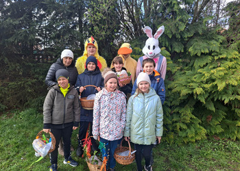 Radości było co niemiara, gdy wszystkie dzieci zobaczyły w drzwiach swoich sal tak nieoczekiwanego gościa. Zajączek w towarzystwie pomocników odwiedzał wszystkie klasy i częstował uczniów słodkościami, a nauczycielom życzył Wesołych Świąt. W szkole zapanowała świąteczna atmosfera, a to dzięki Radzie Rodziców. Był to wspaniały, pełen wrażeń dzień.